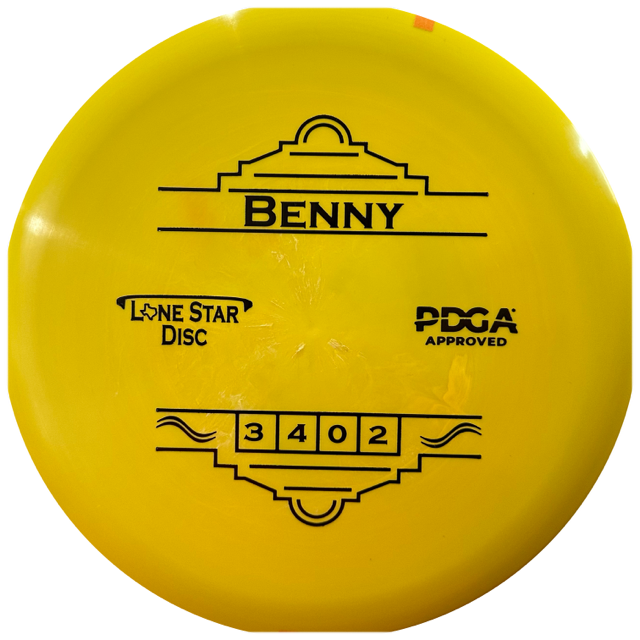 The Lone Star Disc Benny is a straight-to-stable putter with a bead that perfectly complements the Penny Putter. It offers a dependable and straight flight path with a predictable fade, making it a great throwing putter.