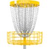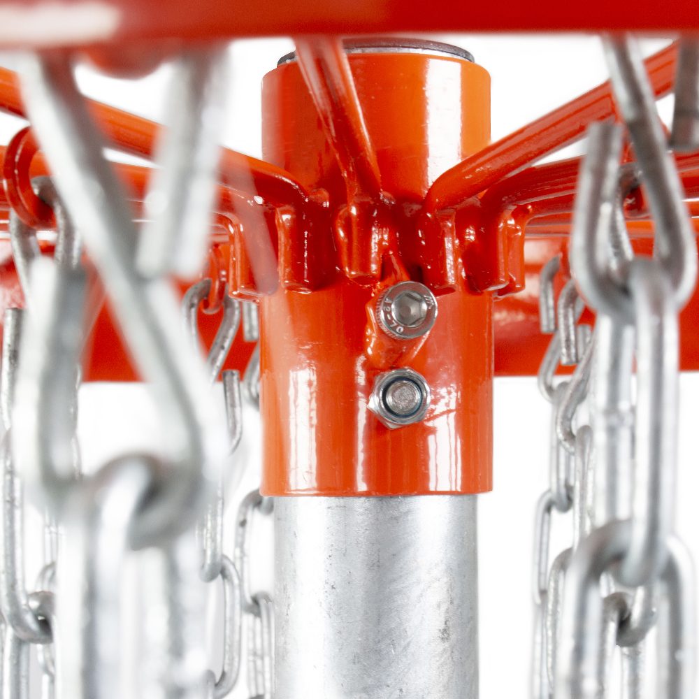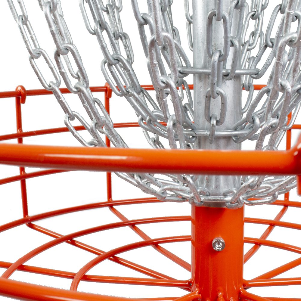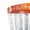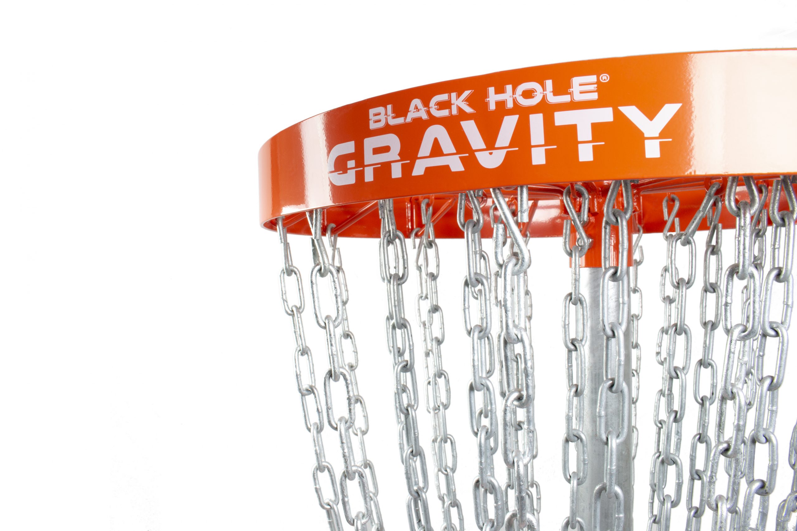 The enhanced Gravity is here to upgrade your local course! Benefitting from MVP’s intense research and development process, the Gravity may be more cost-effective, but it offers a premium catching experience that is at the top of its class. With 30 strands of hot-dipped galvanized steel chain — 12 outer, 12 outer-middle, and 6 inner — on 3 independent rings, the Gravity is a basket with no weak pockets. The independent ring design allows the enhanced Gravity to benefit from elite kinetic energy dispersion — leading to a basket that catches spin, push, hard, and soft putts with ease. Players with all putting styles and velocities will find the Gravity to be the best catching basket in its class. Plus, with a universal locking tab position, MVP baskets are now extremely easy to install on market standard sleeves — installing an MVP basket on your course has never been easier! Available with matching cage colors in Red, Yellow, Orange, and the classic Black top and silver cage as well, the Gravity will be an eye-catcher on any course. On top of all of that, the Gravity also comes with a 20-year limited warranty, with our amazing customer service staff available to put your mind at ease. If you need a championship-caliber target, look no further than the enhanced Gravity basket!