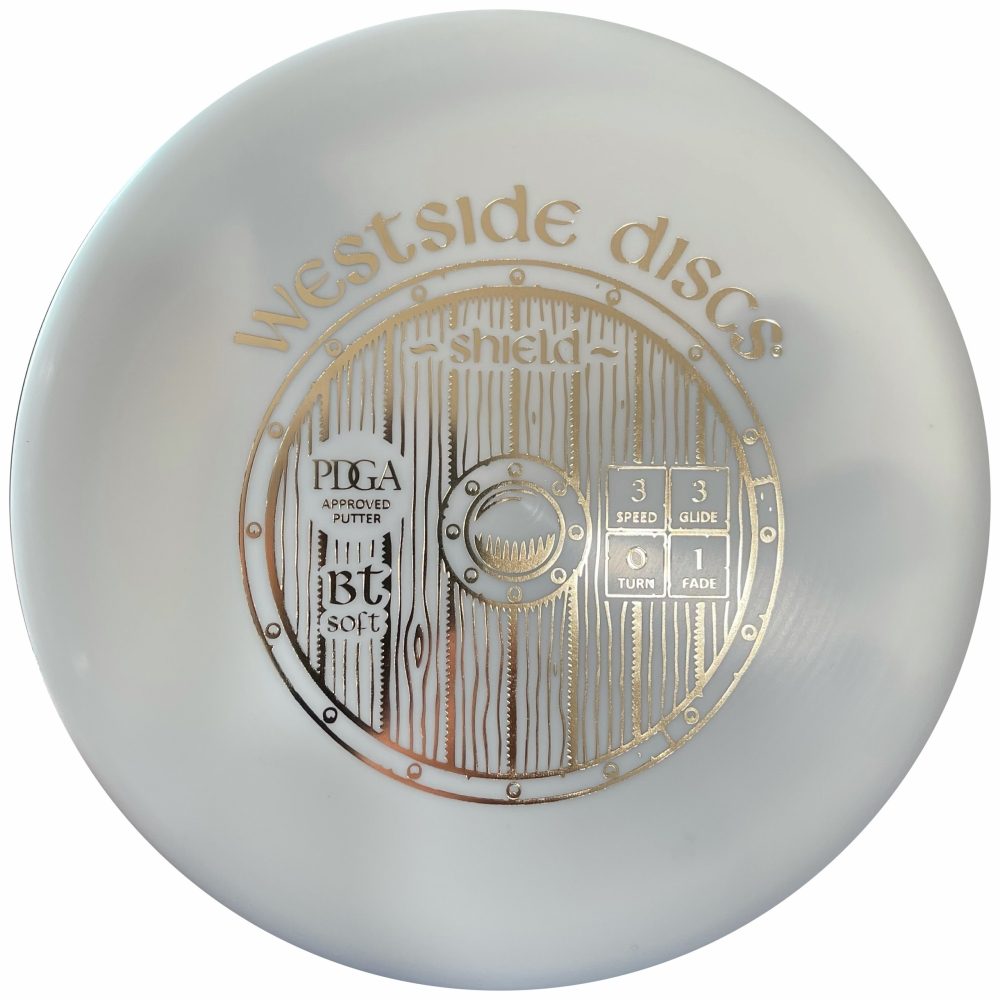 Westside’s newest putter on the market, the Shield, is the next step up from the Swan. Designed with a tacky grip in the BT plastics, the Shield is a little thicker and has a small bead on the rim. It holds a stable line when throwing as an approach and a straight line into the chains while putting.