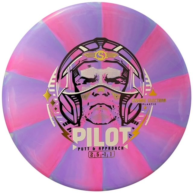 The Streamline Cosmic Electron Pilot is a versatile stable putt & approach disc with a neutral flight profile. This disc golf putter has a medium-depth grip, small-bead wing design, flat top, and a comfortable rounded nose. The Pilot’s feel in the hand with grippy Electron plastics will inspire confidence, while its dead straight flight takes you right to the pin. MVP throwers will find the Pilot’s depth in between the Atom and Anode, and its flight most similar to a seasoned Anode.