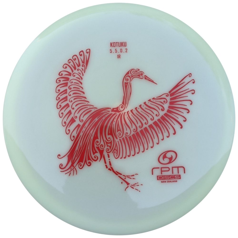 The Kotuku is a reliable, overstable to straight mid-range disc with a nice end-fade. It will easily hold a line and flies with a glide that is sneaky long.