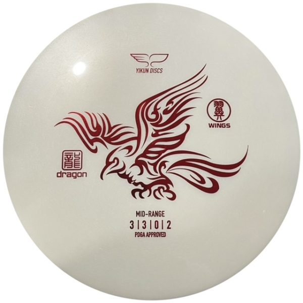 The Yikun Wings is a unique golf disc that serves as sort of a mid-range, putter hybrid. This utility wedge is designed to provide accurate upshots, without overshooting the basket. The Wings is a low cost disc available in Yikun’s inexpensive Tiger-Line plastic. For a mid-range, the Wings has a very thin profile and rim. It has a slightly overstable flight path and provides a unique throwing experience. The Wings is very similar to the Discmania Spring Ox.