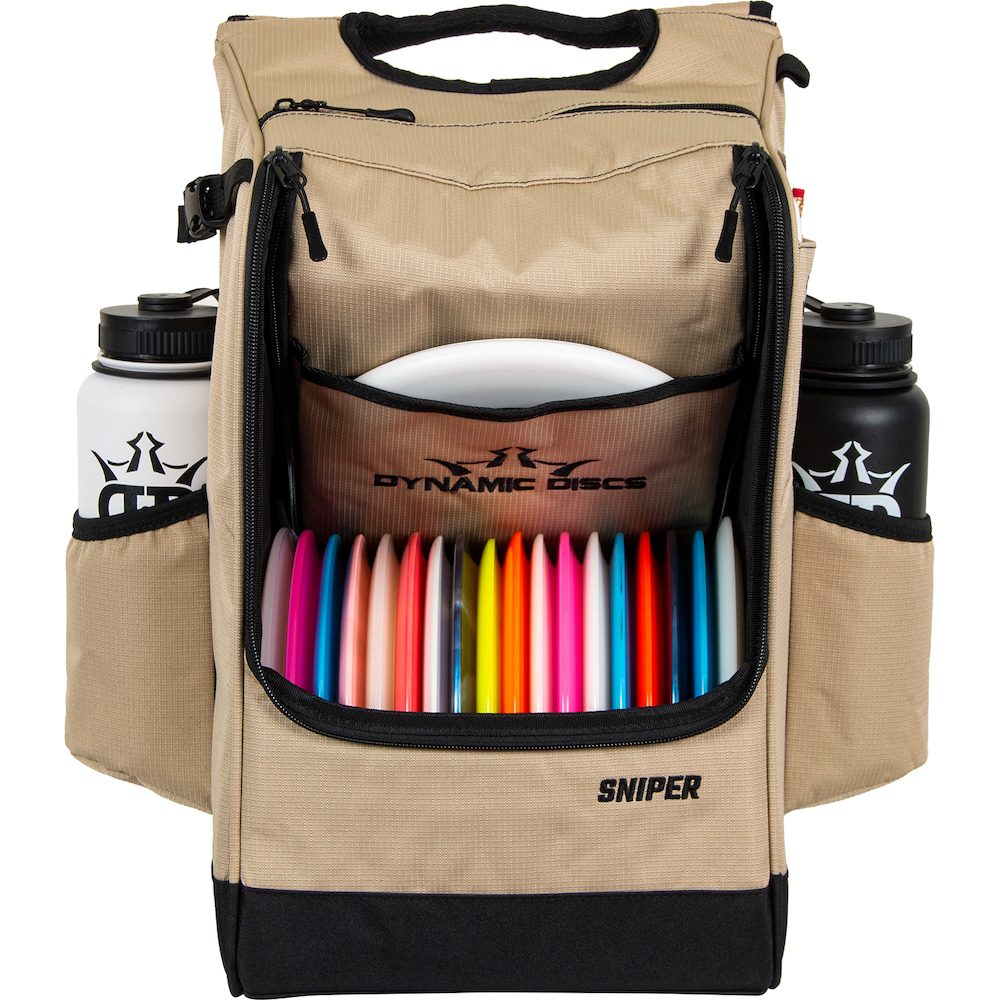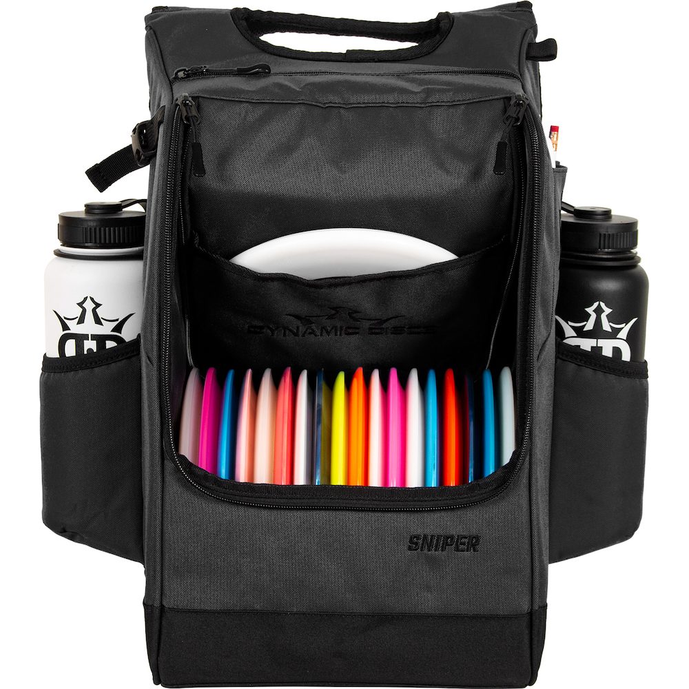 NOTE: Discs, water bottle, and towel in picture above are not included with the Sniper Backpack.