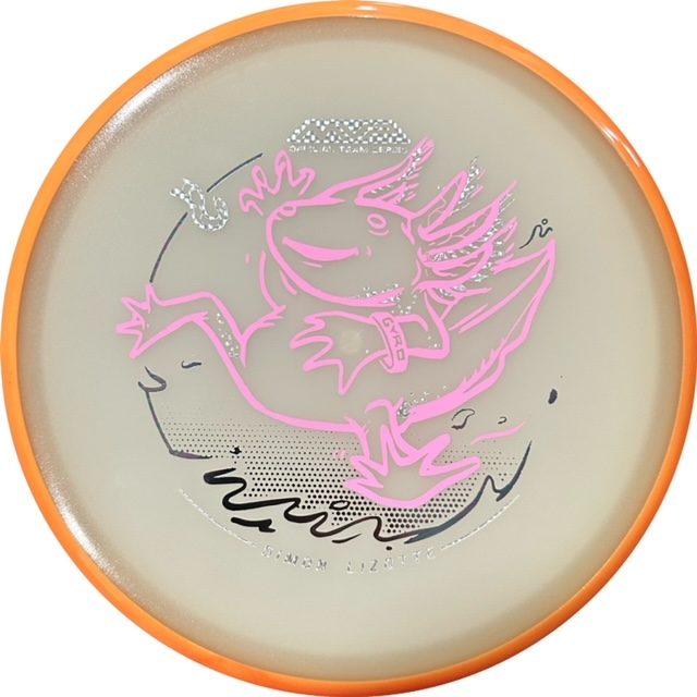 Axiom says this about the mold: “Simon’s first Team Series disc with us had to be something he truly loved, we thought it might be a long process. We thought wrong! It was love at first throw for Simon and the Eclipse Hex, and we are beyond excited to bring this amazing midrange to GYROnauts everywhere. Depicting an extremely excited axolotl, the Leapin’ Liztottl’ is sure to be a fan favorite stamp – adorable levels are off the charts, straight from the mind of Mike Inscho! The Eclipse Hex is the laser straight midrange you’ve been looking for. With enough stability to handle power and torque without turning over, and the ability to shape some beautiful anhyzer lines as well, the Eclipse Hex is ready to carve any fairway you come across – including at night thanks to our industry leading Eclipse glow plastic! Celebrate one of the biggest moves in disc golf history with one of the best midranges on the market – take the leap with us!”