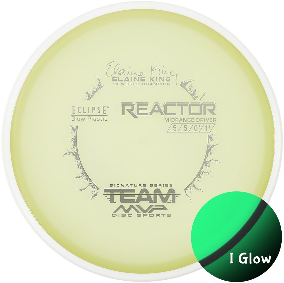 “Elaine King’s second Signature Series disc is here, and it GLOWS! The industry leading glow technology of the Eclipse 2.0 Reactor now proudly supports Elaine King and her touring efforts. As her go-to midrange both during the day and at night, Elaine loves the workhorse nature and feel of the Eclipse 2.0 Reactor. With a reliable fade and just the right amount of turn to be workable, the Eclipse 2.0 Reactor has the flight characteristics to be anyone’s favorite midrange. Get the best glow in the business and support the legendary Elaine King at the same time – grab an Elaine King Signature Series Eclipse 2.0 Reactor!”