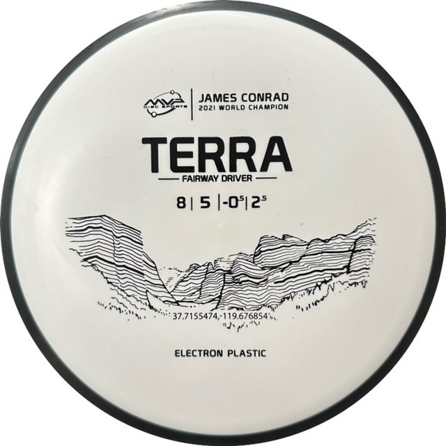 The first Electron Driver from MVP in a long time, the Electron Terra is here! With flight numbers of 8 | 5 | -0.5 | 2.5, the Electron Terra is an extremely useful disc right out of the box, and its starting stability makes it an amazing option for cycling in stages of wear! The Electron Terra can comfortably cycle from a slightly overstable control fairway, laser straight fairway, or hyzer-flip fairway, all the way to an understable turnover fairway – allowing you to have one disc cover every shot you need! Plus, the all-weather grip of Electron plastic makes the Electron Terra grippy in even the wettest conditions! Bring confidence and reliability to your game with an Electron Terra!