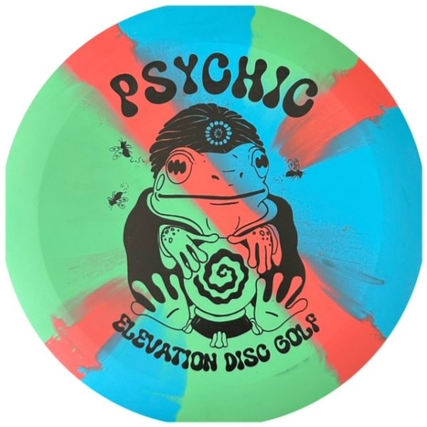 The “Psychic” is Elevation disc golf’s first distance driver, and we predict your mind will be blown when you see how far this flexible disc can fly! It is a low profile distance driver making it comfortable in the hand and capable of an extremely straight flight path. The exceptional rubbery grip of the ecoFLEX material will ensure you get the most speed on the disc possible, even in inclement weather. Due to our unique compression molding process we are able to make the flight plate 35% thinner than plastic injection molding processes. Combine that with our rubber materials that are 30% more dense than plastic, and you have enhanced gyroscopic stability that rivals the best in the sport! So, if you want a disc that bombs then stops, we see the Psychic in your future 🙂