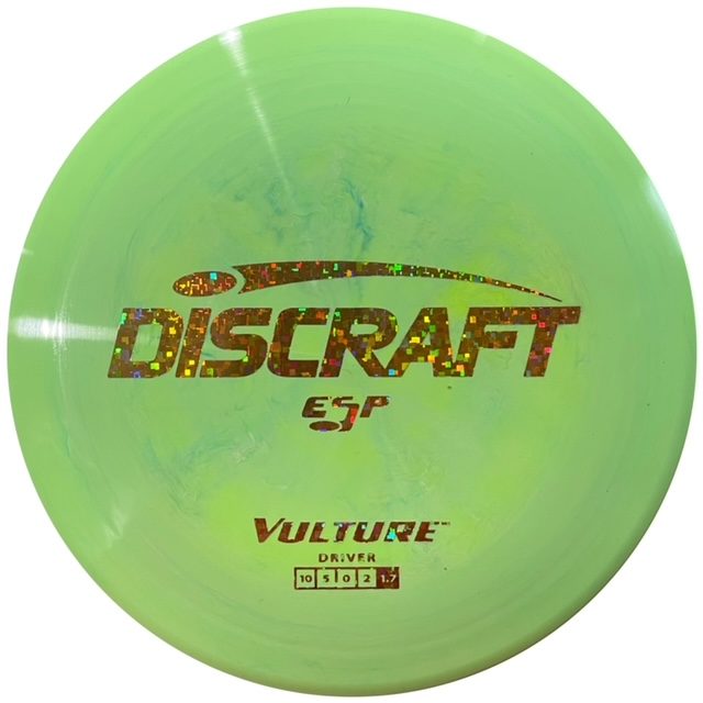 The Discraft ESP Vulture is a moderately overstable (1.7) extra long range driver suitable for all players. It’s like a well seasoned Predator with less overstability and more glide. The medium rim provides more control and feels excellent in your hand. Whether you throw backhand or sidearm, expect extra glide as well as a consistent fade into your target. The Vulture is predictable in wind and great for long range placements. Pros appreciate the shot-shaping ability of this disc golf driver while less experienced players find a consistent, predictable flight.