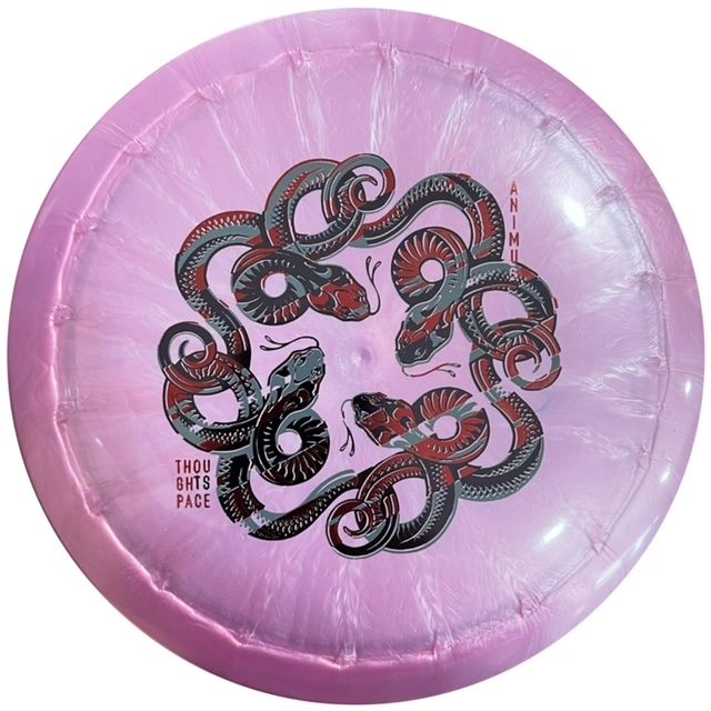 The Animus is a high performance distance driver with a moderately overstable flight pattern. It handles torque well when thrown by experienced players, but does not have so much fade that it is unmanageable by recreational players who need an overstable driver in their bag.