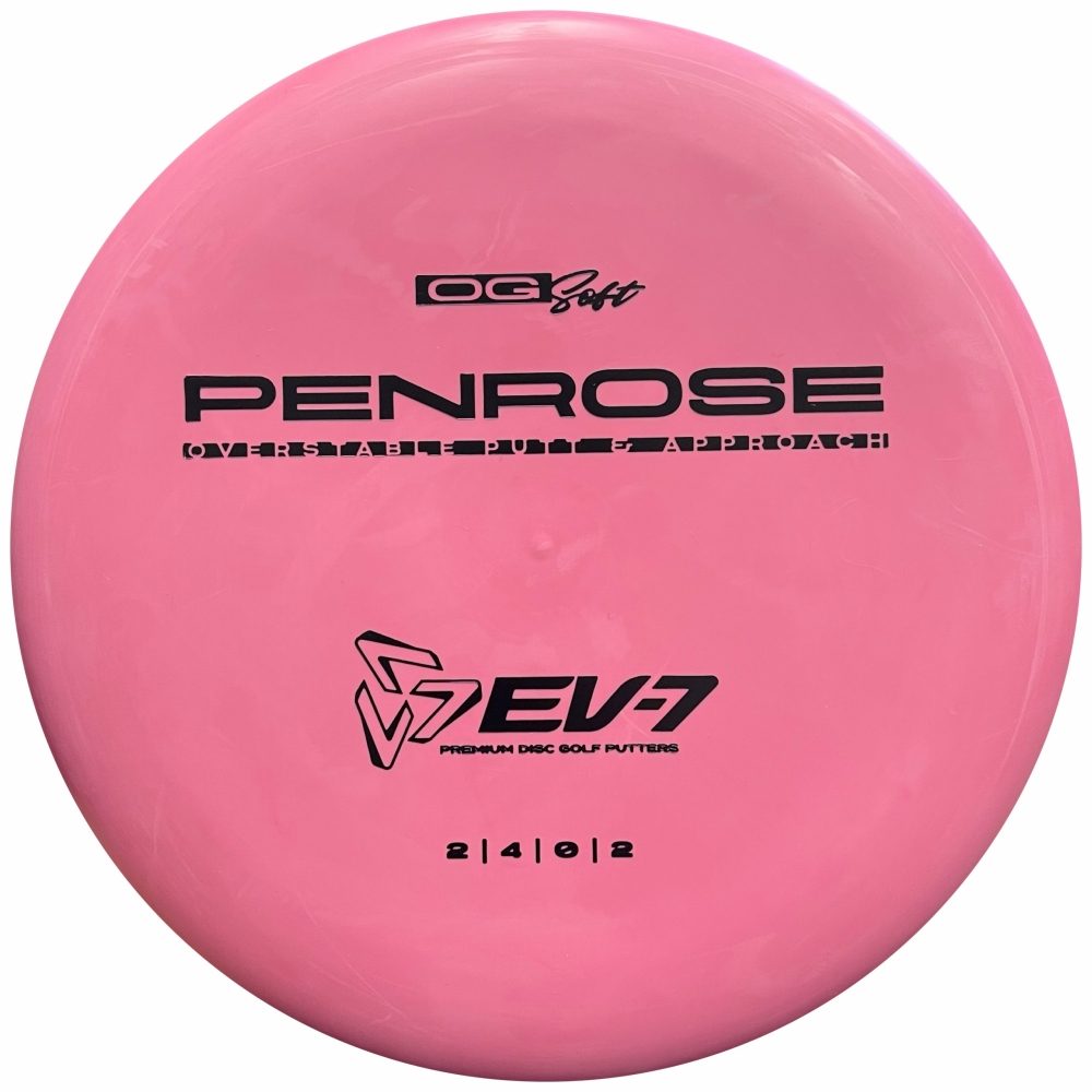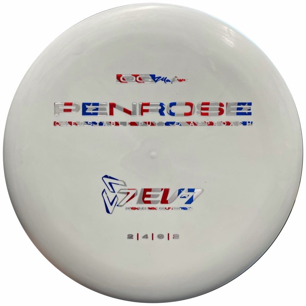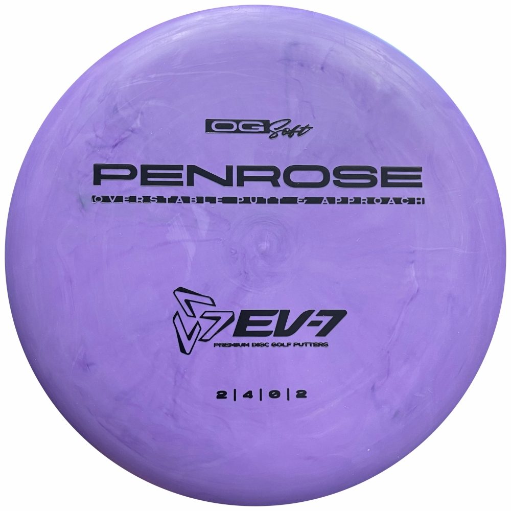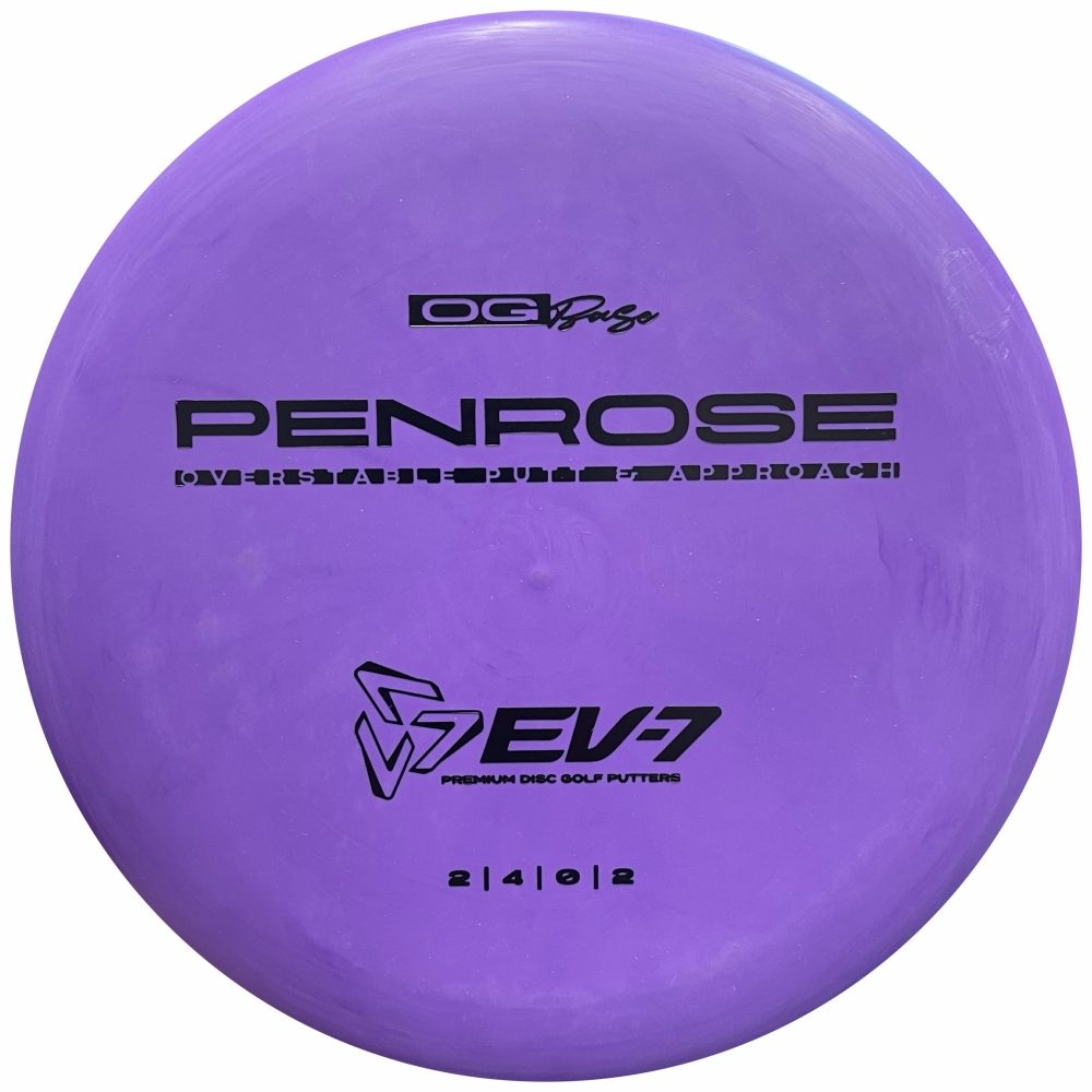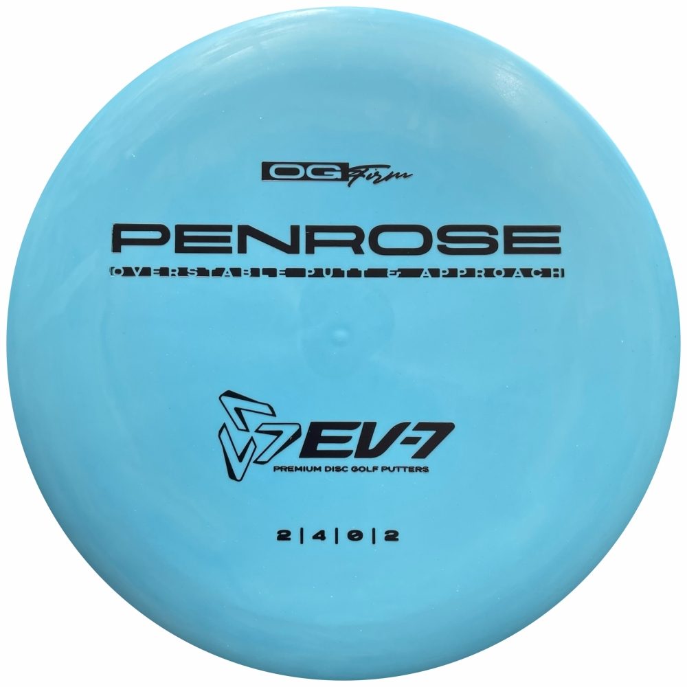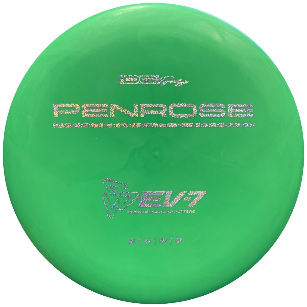 The Penrose is EV-7’s debut putt and approach disc. It has reliable high-speed over stability and resistance to turn, but is uniquely straight with consistent fade at lower speeds on the putting green. With a slightly deeper profile, small bead, and smooth feel, the Penrose fits the hand comfortably, inspiring confidence for both putts and upshots.