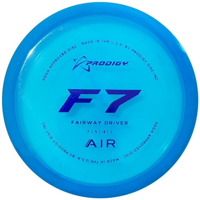 The Prodigy Disc F7 is a medium speed, understable fairway driver with substantial glide. It is a great choice for recreational and beginner players. It is also excellent for turn-over shots and rollers.