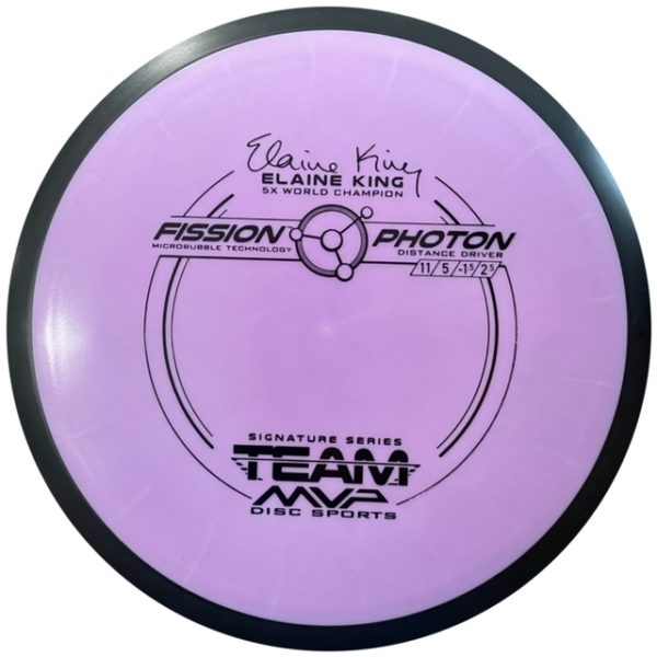 The MVP Fission Photon is a stable-overstable distance driver. The Photon is best described as a longer Tesla allowing power throwers the ability to achieve some flight extending turn and all throwers to get a reliable fade. The Photon disc golf driver is naturally headwind resistant but average power throwers can use a headwind to emulate those extended flights of high power throwers.