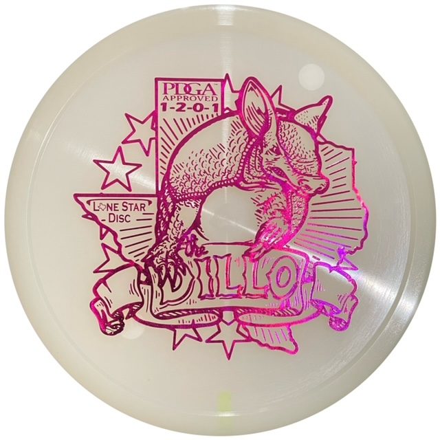 The Armadillo is a low speed and low glide disc. This disc is meant to be accurate and offer great control It has a thumbtrack on the disc for comfort. It is an easy disc to control, and will fly consistently to provide good accuracy. Lone Star says, “Our newest Putt and Approach disc holds true to its namesake with its Blunt Nosed Rim and Thumbtracked Shoulder that forces this disc to fly straight as an arrow with a reliable fade to its intended target.”
