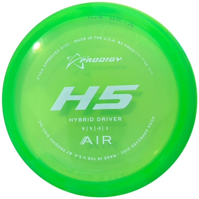 The Prodigy Disc H5 is a brand new, fast flying, Hybrid Driver. Depending on the thrower’s power, the H5 will have a stable to under stable flight path. The H5 has plenty of speed to spare, and provides great flip up from hyzer glide. When thrown properly, the mid-flight glide is amazing. Distance matched with dependability will make this disc a favorite of beginner and advanced players. Predictable flip will allow this disc to become a go-to for rollers and left to right tunnel shots for advanced and professional players.