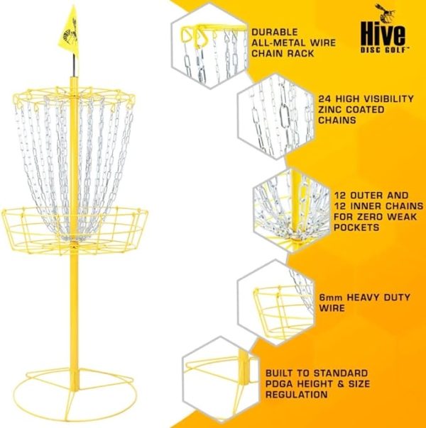 • UNIQUE DESIGN – The Hive Double Chain basket is uniquely designed to reduce putt throughs and misses.