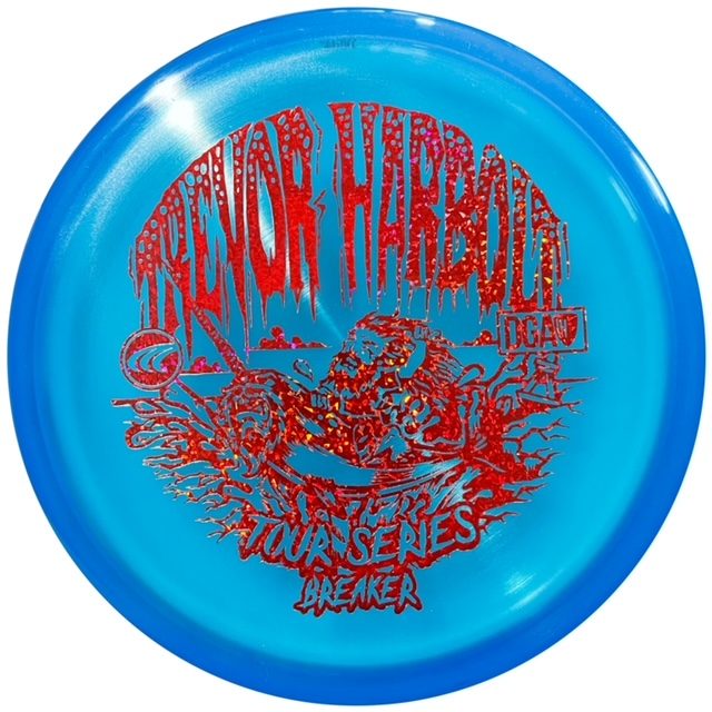 The 2022 Trevor Harbolt Tour Series Breaker was created using a super clear “Ice” blend of plastic. This run of Ice Breakers are fairly stiff plastic blend, which provides added stability for confidence and accuracy when approaching the basket.