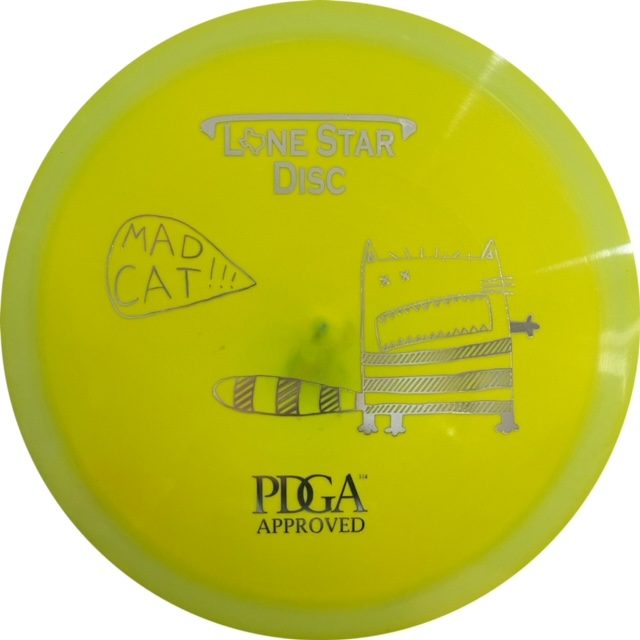 The Mad Cat is an overstable fairway-driver. It has a slim, flat, profile that makes it great for forehand throws, headwinds, and/or power throws.