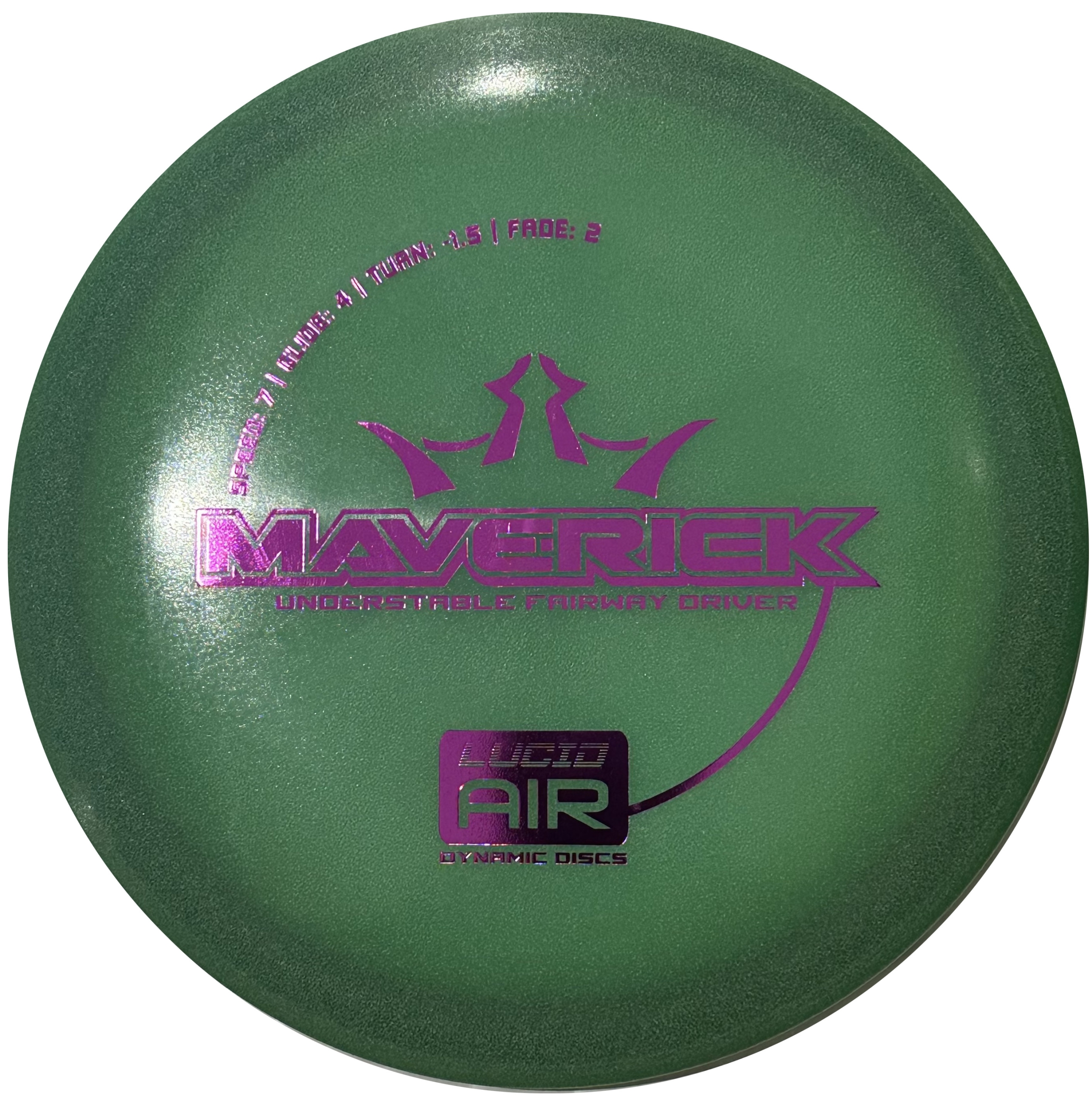 The Maverick can fit in nearly every player’s bag. The Maverick’s smaller rim offers controllable fairway speed and straighter flights for slower arms with trustworthy anhyzers and slow turns for experienced players. The Maverick shines in the woods with low ceilings and tunnel shots. Versatility and workable speed allow the Maverick to steal throws from even the most established bags.