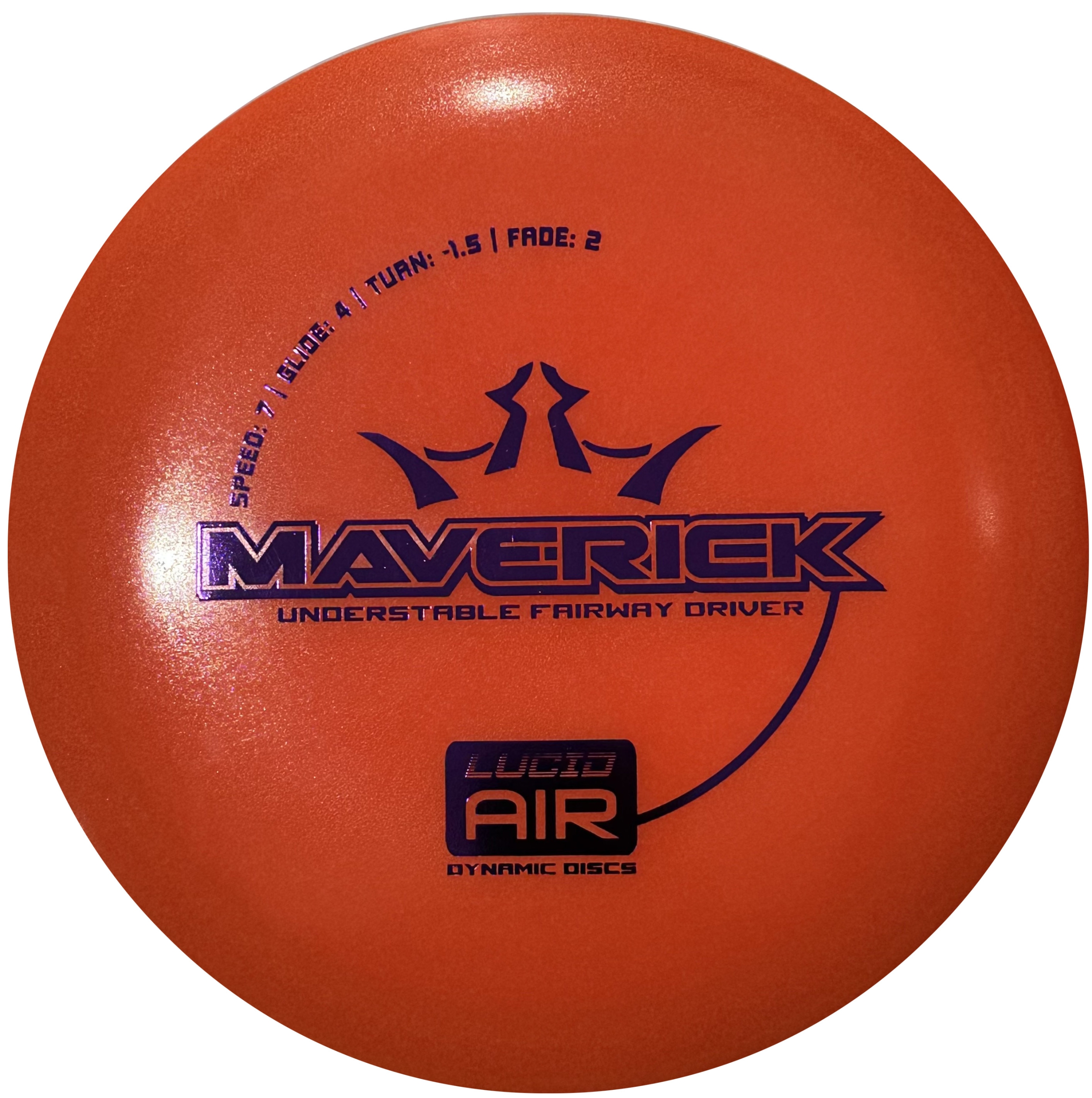 The Maverick can fit in nearly every player’s bag. The Maverick’s smaller rim offers controllable fairway speed and straighter flights for slower arms with trustworthy anhyzers and slow turns for experienced players. The Maverick shines in the woods with low ceilings and tunnel shots. Versatility and workable speed allow the Maverick to steal throws from even the most established bags.