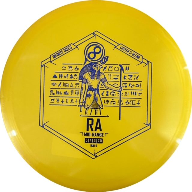 The Infinite Discs Ra is a moderately overstable midrange with a very flat top and comfortable, beaded rim. It feels and flies perfectly for both backhand and forehand players. It is difficult to find a midrange that is so easy to control and so precise under multiple course conditions.