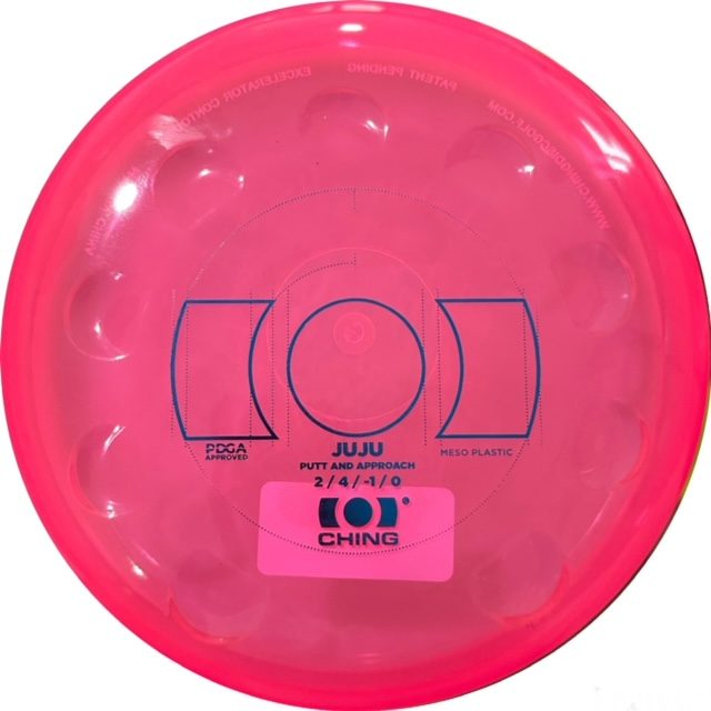 The Juju is an ultra-straight putter. It has innovative thumb tracks around the rim that allow you to adjust your grip in order to adjust the flight of the disc. Like the Precision midrange, the thumb tracks are located at different levels along the rim, and an empty slot is left for when the thumb track is not needed. The Juju is a very beginner friendly disc for those who are new to the game and who are learning how to properly grip putters.