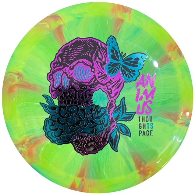 The Animus is a high performance distance driver with a moderately overstable flight pattern. It handles torque well when thrown by experienced players, but does not have so much fade that it is unmanageable by recreational players who need an overstable driver in their bag.
