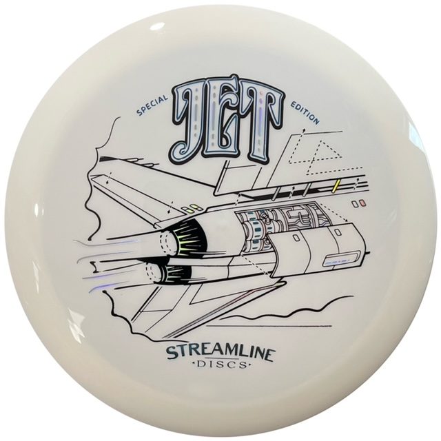 With a Jet this powerful, you have to make sure to follow the schematics! This stylized diagram by the venerable Michael Ramanauskas captures the essence of Streamline’s newest driver: the Jet! Astute observers may have already noticed that this SE is part of a family with Ramanauskas’ previous work on Streamline SEs. This SE is a visually interesting, clean, and – dare I say it – streamlined work that looks equally in place both at the course and in your collection at home. Prepare for liftoff with the Streamline Jet Neutron SE!