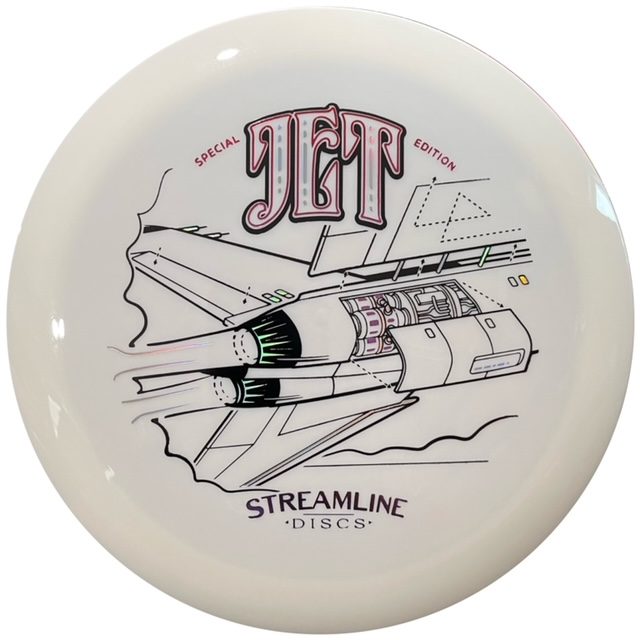 With a Jet this powerful, you have to make sure to follow the schematics! This stylized diagram by the venerable Michael Ramanauskas captures the essence of Streamline’s newest driver: the Jet! Astute observers may have already noticed that this SE is part of a family with Ramanauskas’ previous work on Streamline SEs. This SE is a visually interesting, clean, and – dare I say it – streamlined work that looks equally in place both at the course and in your collection at home. Prepare for liftoff with the Streamline Jet Neutron SE!