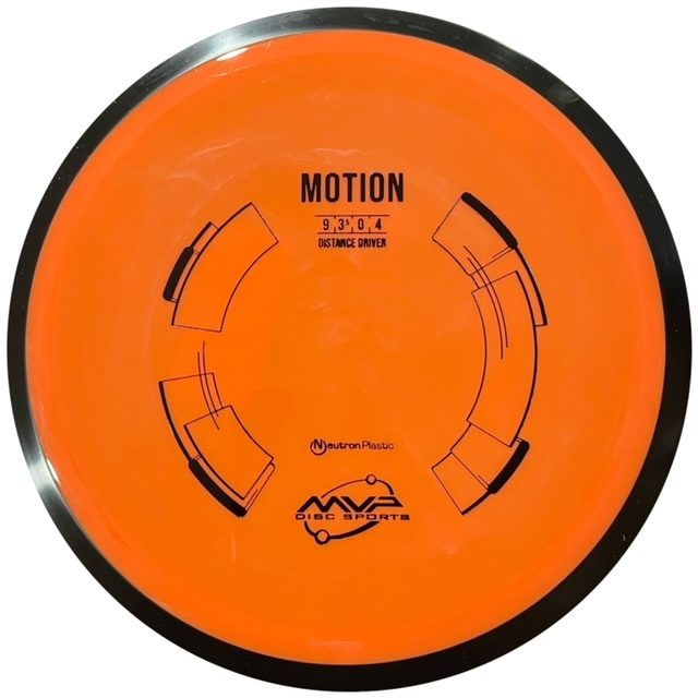 The MVP Neutron Motion is an overstable distance driver. The Motion is designed to resist turnover from power or headwind during a long straight travel, followed by a reliable fade. Fans of the Resistor will appreciate the Motion’s extended distance with familiar characteristics. While this disc golf driver serves as a utility driver for average-power throwers, high-power throwers will find a trustworthy straight-to-overstable distance workhorse. Forehand throwers will find its overstability especially useful for torque resistance. Released 5-23-2014.