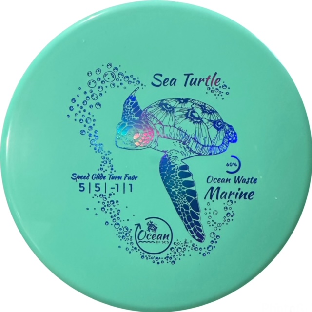 The Sea Turtle is Ocean Discs first disc golf disc, a straight flying torque resistant midrange, great for approach up shots with little to no turn. This disc can handle the power from all arm speeds with the flight numbers 5 | 5 | -1 | 1 in the Ocean Waste Marine base line and 5 | 5 | 0 | 1 in their premium plastic blends. Ocean Discs designed a disc that is perfect for all skill levels, whether you’re just starting out or a seasoned pro. With exceptional glide, this disc holds any line you put it on, with a small finish at the end of the flight. Trust the Sea Turtle to be your reliable go to approach midrange disc. The Sea Turtle is approved by the Professional Disc Golf Association (PDGA) allowing you to throw the disc in PDGA sanctioned leagues and tournaments.