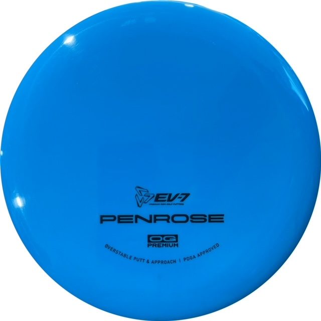 The Penrose is EV-7’s debut putt and approach disc. It has reliable high-speed over stability and resistance to turn, but is uniquely straight with consistent fade at lower speeds on the putting green. With a slightly deeper profile, small bead, and smooth feel, the Penrose fits the hand comfortably, inspiring confidence for both putts and upshots.