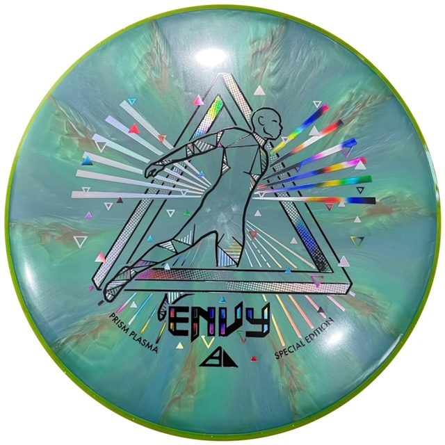 Realized in gorgeous triple-foil, Michael Ramanauskas brings his talents to the Prism Plasma Envy SE! Complete with an impossible shape and foiling that plays on prismatic refraction, this SE fits perfectly with the Envy’s first printing in Prism Plasma. Like any good prism, the Prism Plasma Envy SE looks particularly stunning in the light — especially spinning down a fairway! Grab a Prism Plasma Envy SE for your collection today!