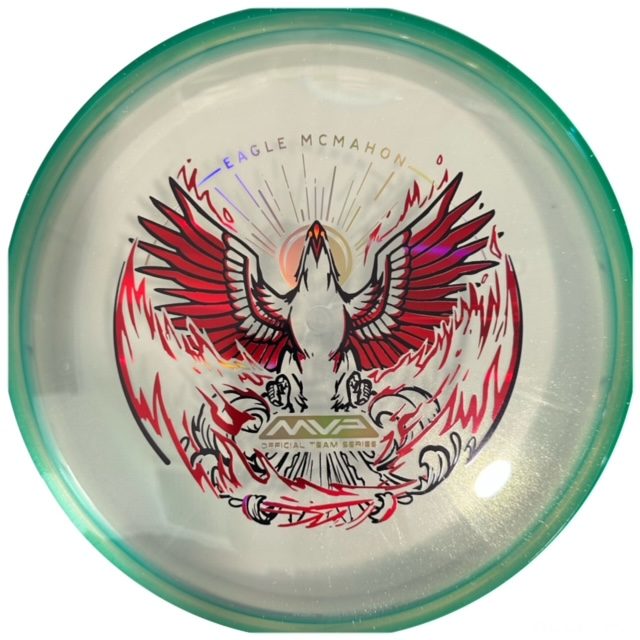Like a phoenix rising from the ashes, Eagle McMahon’s first Official Team Series disc fully embraces the idea of new beginnings and the fire that burns within. Suitably named “Rebirth”, Mike Inscho has beautifully illustrated Eagle’s first triple-foil stamp, featuring an eagle rising from the ashes on his personal mold of choice, the Prism Proton Envy. Don’t miss your chance to snag the very first of what is sure to be a long line of discs that directly support Eagle!