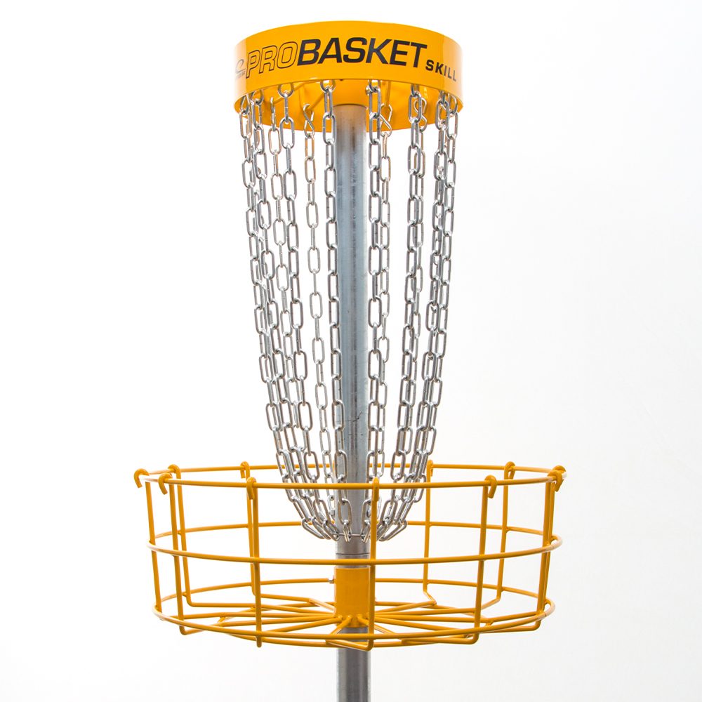 The ProBasket Skill is for players that want to improve their putting skills. With its narrow profile, it will make putting practice hard and fun, but competitions easy when transitioning from the ProBasket Skill to a tournament basket. The low weight, the smaller based mobile foot, and divided pole makes this basket easy to move around.