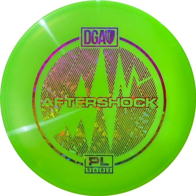 The DGA Aftershock midrange disc is stable to slightly overstable and will hold reliable lines for players of all skill levels. This utility midrange can be thrown on straight flight paths as well as trustworthy hyzer lines. Use the Aftershock off the tee or for pinpoint approach shots. The Aftershock is a staple midrange disc in the DGA lineup and players of any skill level should have one in their bag.