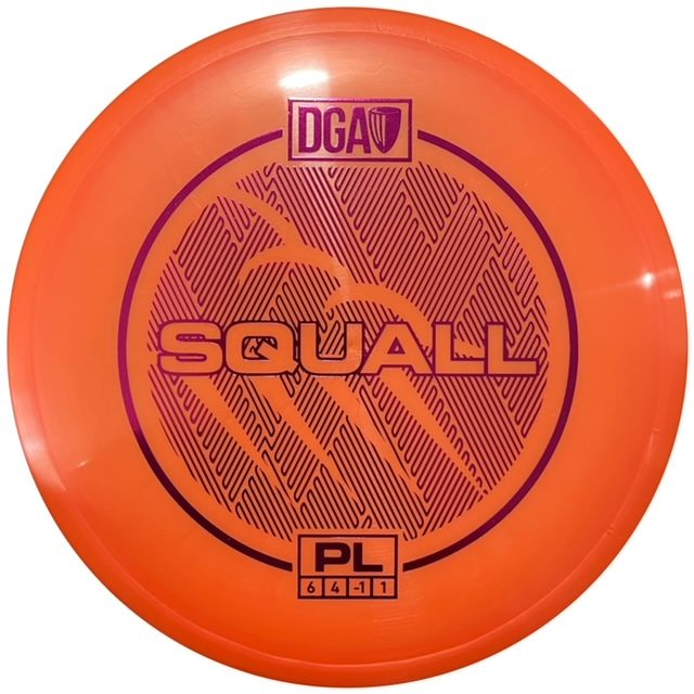 The DGA Squall midrange disc is an innovative slightly understable midrange that holds long anhyzers and any flip to flat lines. If you ever have to play a course with just one disc, this is that disc. With a great feel in the hand and close to fairway driver like speed, the Squall is one of the fastest midrange discs available. You can use the Squall to drive short holes or to find the basket on challenging midrange shots. The consistent performance of this disc will make even the most seasoned player swap their go-to midrange disc and replace it with a Squall.