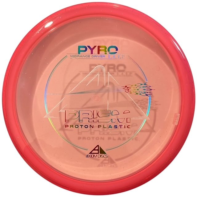 The Axiom Prism Proton Pyro is an overstable mid range driver. As a stock disc, it sports a triple-foil stamp. It has a Proton core and Prism rim resulting in a stunning dual-toned translucent disc golf driver. The Pyro, Axiom’s first overstable mid range, has more glide than the MVP Deflector and a commanding stable finish. It has enough stability for consistent flights in strong winds and powerful throws without losing its line and turning off target.