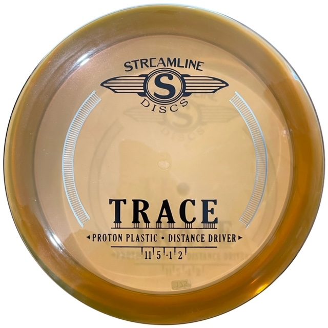 The Streamline Proton Trace is a straight-stable distance driver. It has a moderate dome that is smooth and even with a shoulder and depth that yields excellent glide. Most players will be able to stand the Trace up on a hyzerflip, but this disc golf driver will soak up plenty of power before being pushed off its straight line. Its ending fade is smooth but dependable for easy ranging.
