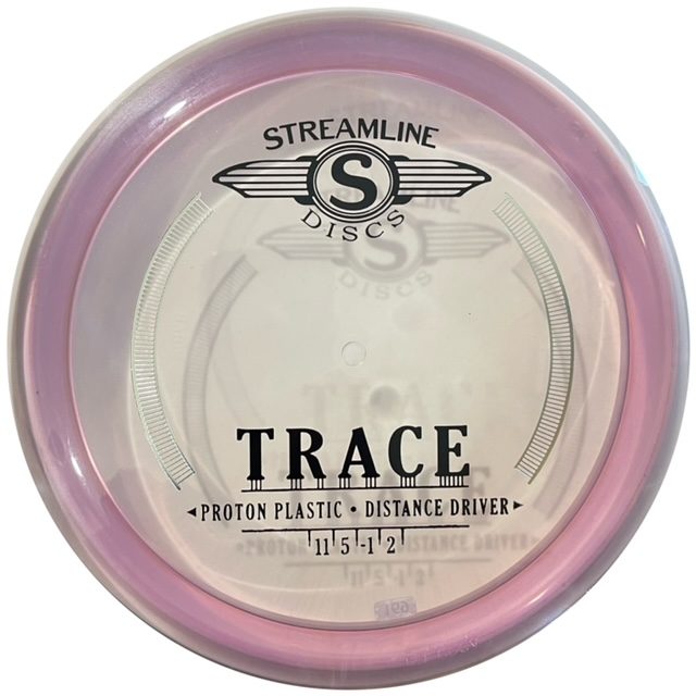 The Streamline Proton Trace is a straight-stable distance driver. It has a moderate dome that is smooth and even with a shoulder and depth that yields excellent glide. Most players will be able to stand the Trace up on a hyzerflip, but this disc golf driver will soak up plenty of power before being pushed off its straight line. Its ending fade is smooth but dependable for easy ranging.