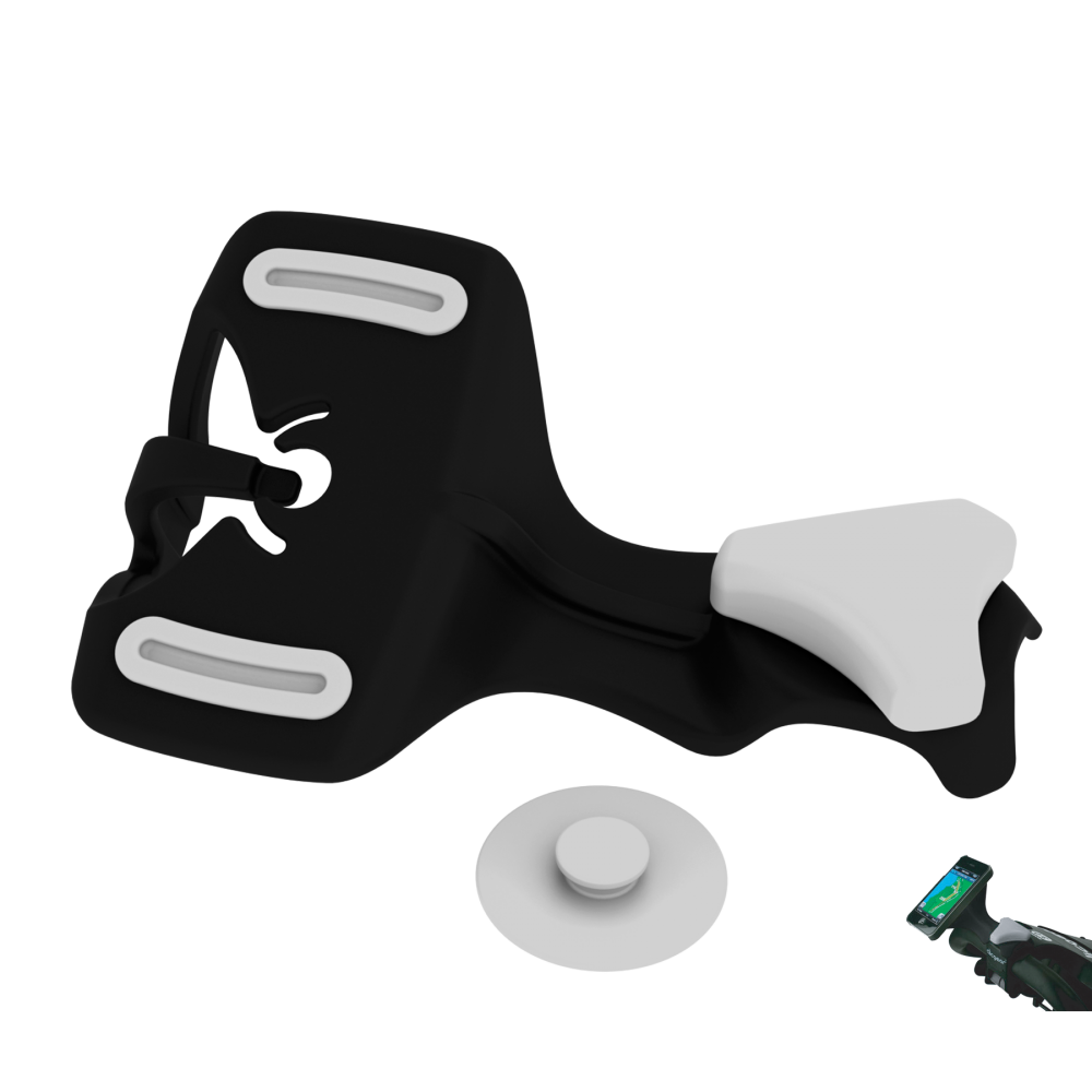 The Clicgear GPS / Phone Holder is designed to securely hold your handheld devices. The silicone pads can be adjusted to accommodate different devices to ensure a tight fit. In order for your device to work with the GPS / Phone Holder you either need to use a case that includes a button tab or you will need to stick the provided tab to the back of your device. This tab is what secures your device into the holder.