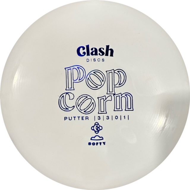 The Clash Discs Popcorn is a straight flying putter. This salty straight putter provides a controllable approach disc that can hold a large variety of lines. This putter can find a spot in your bag as a workhorse of a throwing putter and even a putting putter.