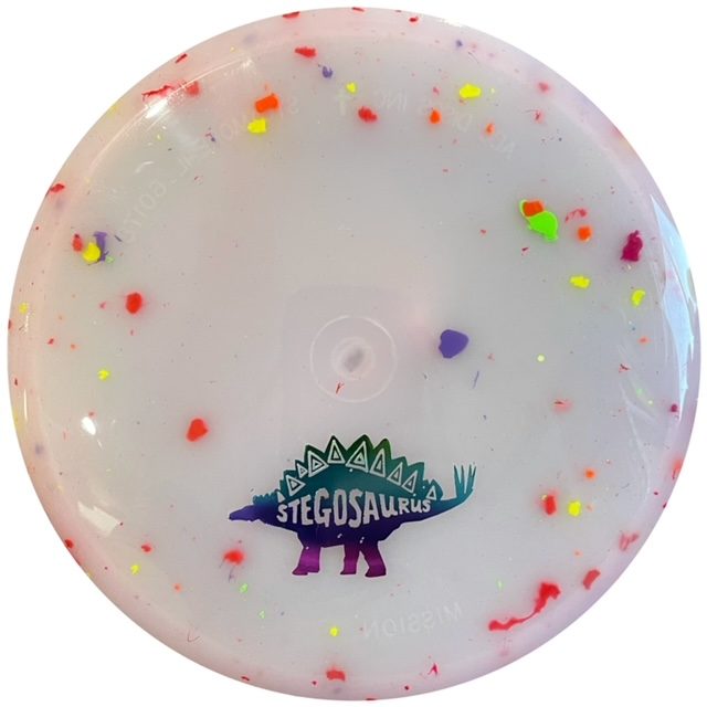 The Stegosaurus is the quintessential mid-range driver designed for some turn with a little bit of end-fade. Of course, in a lighter weight, it is more understable than the flight numbers might suggest. But for kids, this mid will do the trick in fading to the basket for a short putt. It has a somewhat deeper rim for more of a “frisbee” feel for new players.