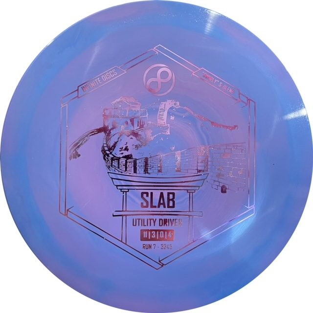 The SLAB is a high-speed, very overstable distance driver with a flat top and wide rim. The SLAB is designed for power throwers who want a disc that still fades, no matter how hard it is thrown. This disc works wonders for spike hyzer throws, strong forehand throws, as a wind fighter, or as a utility disc when you need to fade hard around obstacles. Watch the Slab slice dependably through the air under any conditions.