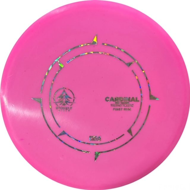 The Stokely Discs Cardinal, a mid-range disc, is designed to provide a reliable flight pattern that benefits players during approaches and short drives. Initially, it exhibits a slight overstable trajectory, which stabilizes early in its flight. As it progresses, the Cardinal demonstrates a strong fade towards the end, which is particularly effective in preventing the disc from overshooting the target. This disc is adept at maintaining its flight angle, even in the face of strong headwinds, ensuring consistent performance when precision is crucial.