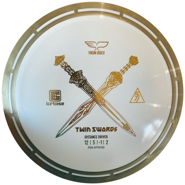 The Twin Swords is the first roll-out disc model from Yikun in their Tortoise Line plastic which is their overmold “Shell” configuration. The rim is attached to the flight plate through their own, unique method, giving the discs an amazing look. The Twin Swords is a distance driver with a Speed 12 rating and wide, yet comfortable rim width. The Twin Swords is a unique and exciting new offering to the disc golf world, earning a spot in the bag for players at all levels.