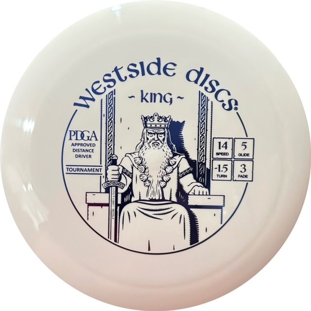 Our most popular high speed driver, the Westside King is our fastest disc for all levels of players. The farthest flying disc in our line the King is designed to allow the average player to experience a long distance flight. It has a good grip and a nice high dome. It traps the air and rides on it like you have never seen before. For professional players the King will be your longest flying disc and roller in your bag. For lower speed arms this will finally give you that full flight you always wanted on the course