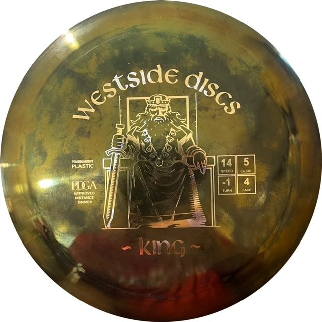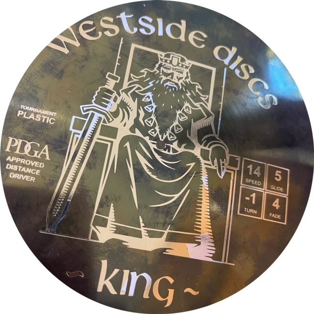 This is an original Tilted Sword King with a factory two foil stamp. The plastic is a bleeder plastic. The disc is sticker weight.