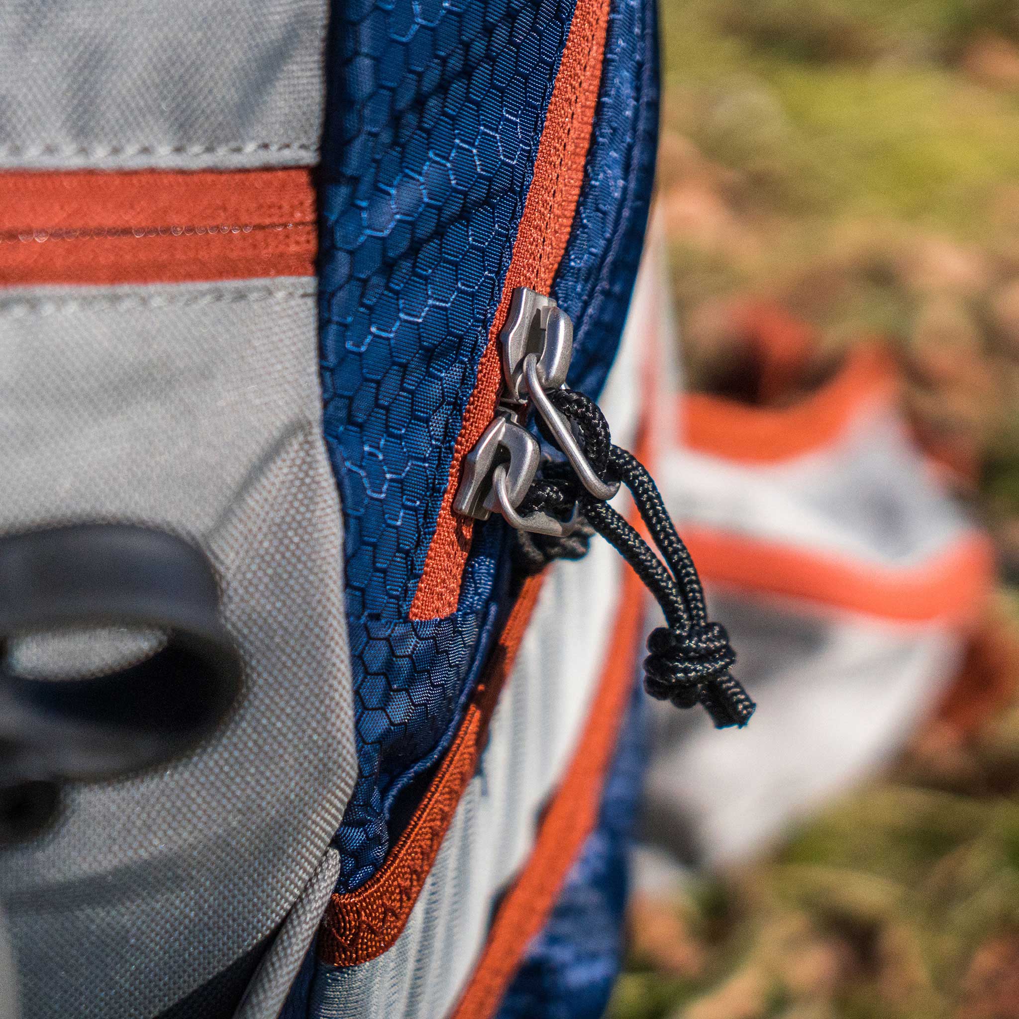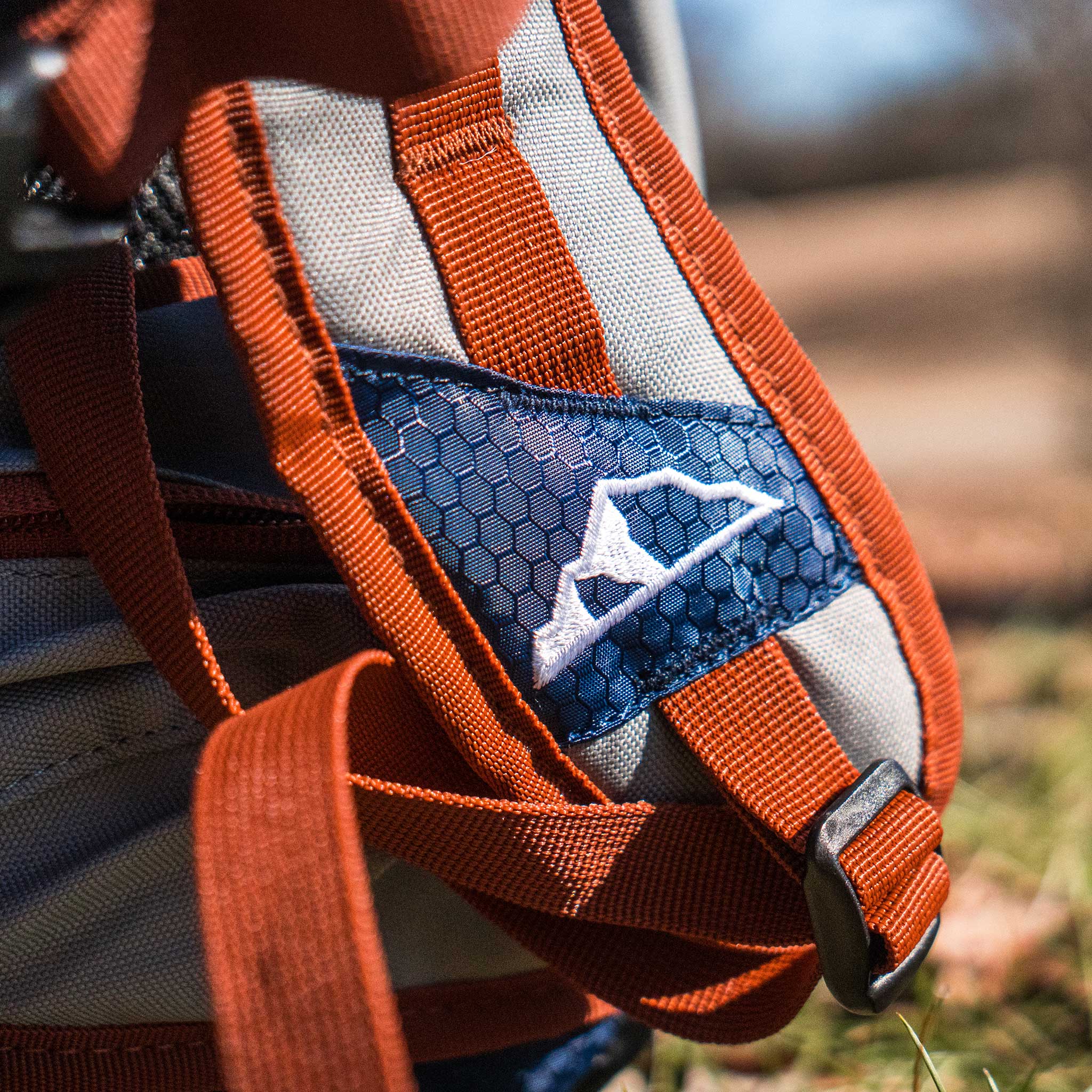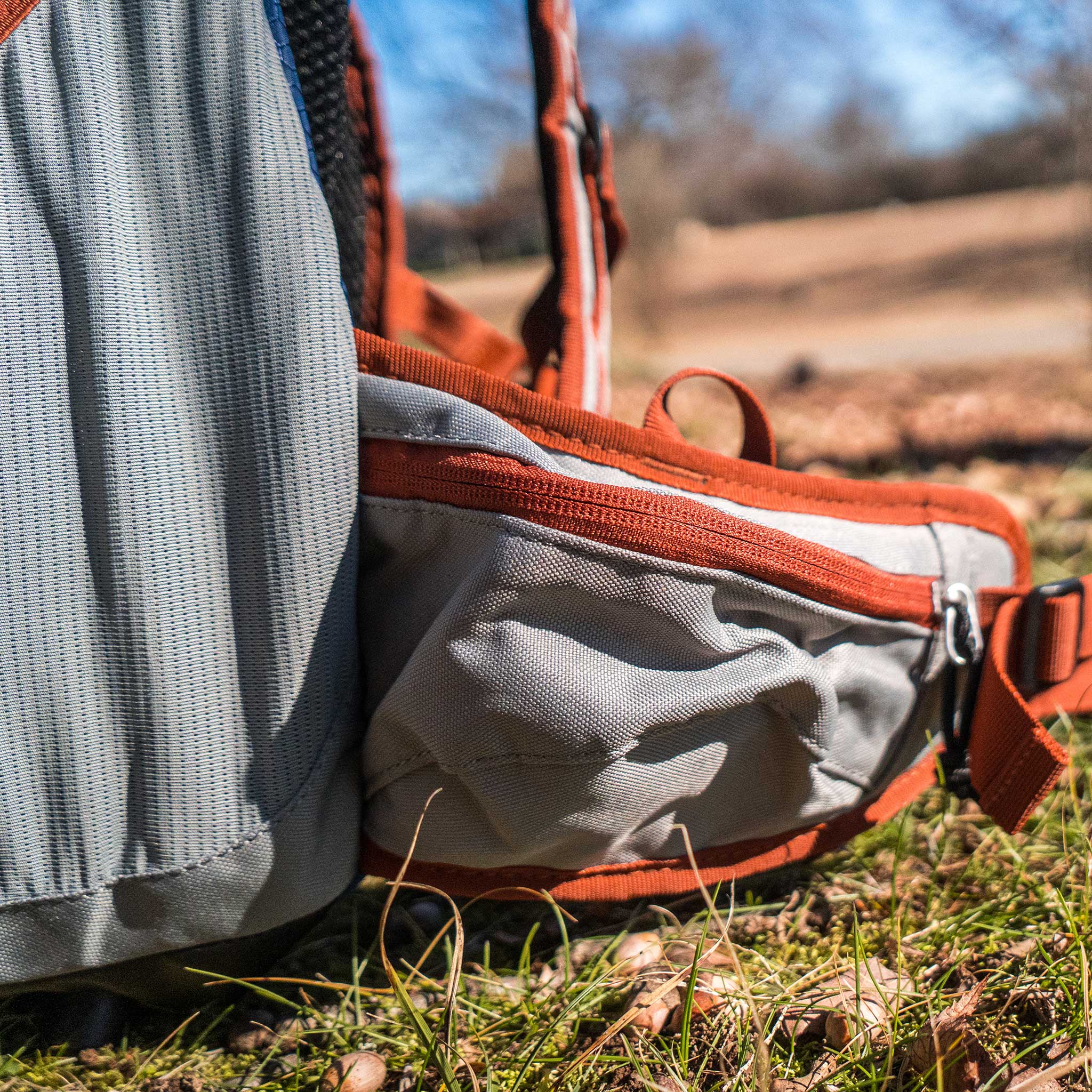 • Hook and loop panel on the outside of the water bottle pocket for patches.