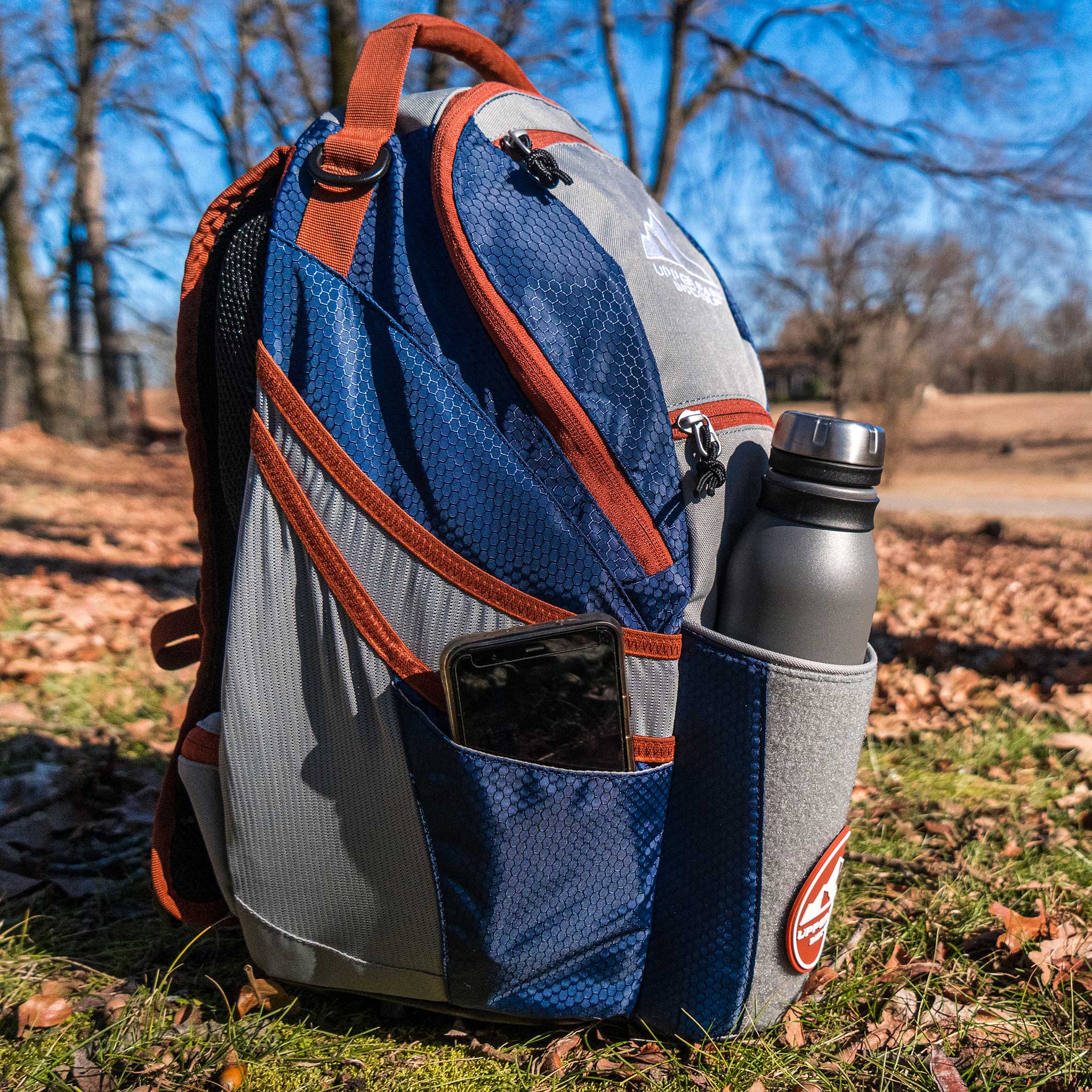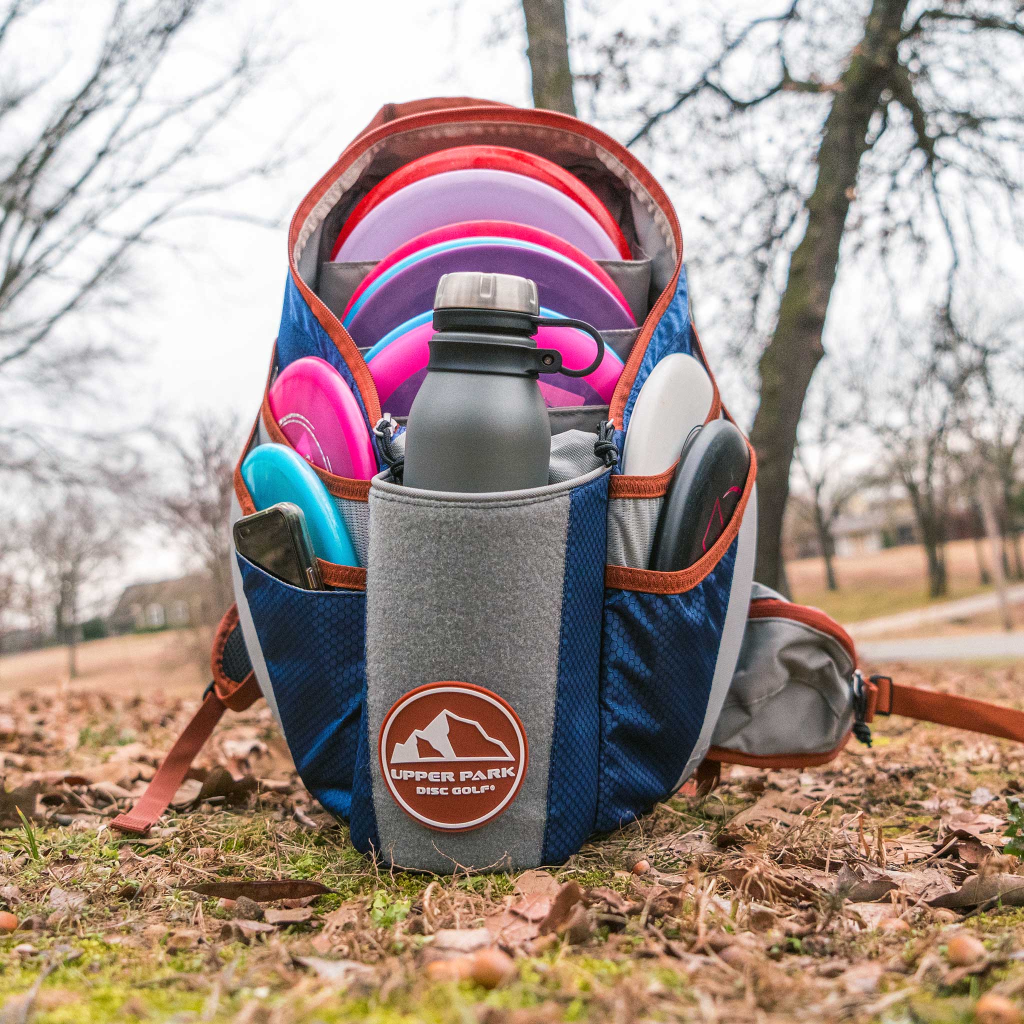 This is the ideal bag for players that want to play through, no matter the weather. Battle through the heat with a 40 oz insulated water bottle holder and a ventilated back panel. Play on through the rain with the waterproof base and included flap-access rain fly. And don’t be afraid to get a little dirty with the 4 individual feet and an abrasion resistant, waterproof base that will keep your bag upright and your discs at the ready.